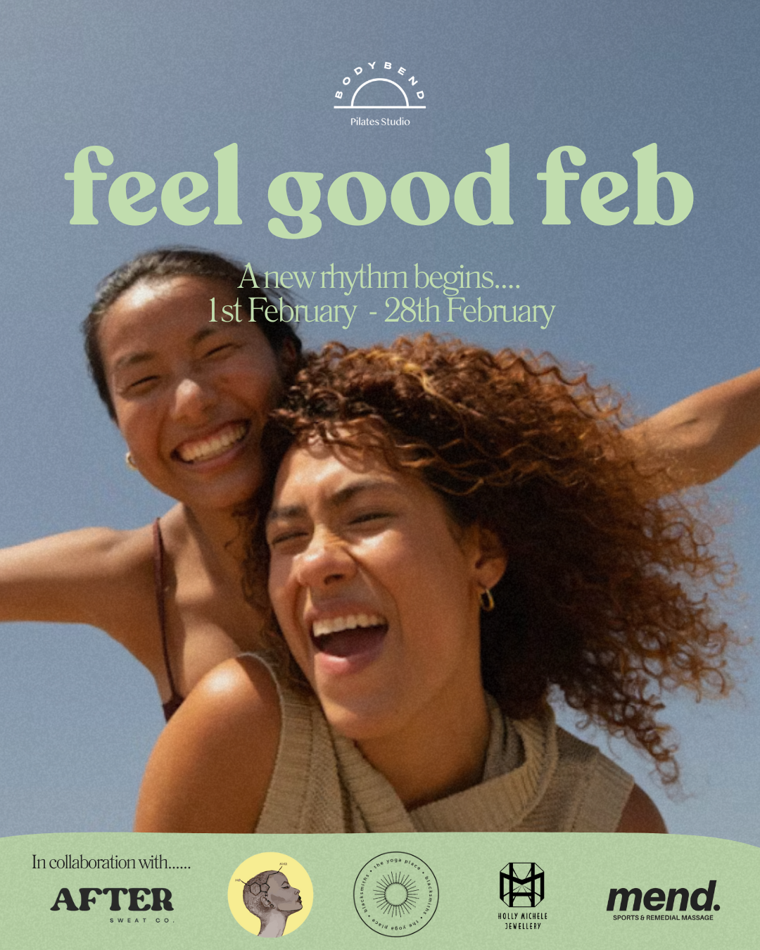 That’s where Feel Good Feb comes in. Feel Good Feb is a 4-week Pilates challenge designed to help you build momentum, feel stronger, and reconnect with movement—without pressure or overwhelm. It’s about showing up with intention, finding your rhythm, and feeling supported every step of the way.